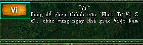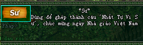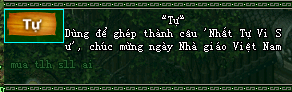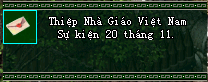Thiệp nhà giáo Việt Nam Sử dụng nhận 750.000 EXP ( Không cộng dồn ) Sử dụng tối đa x1000 cái Đẳng cấp 10 trở lên có thể sử dụng |