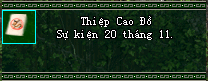 Thiệp cao đồ Sử dụng nhận 100.000 EXP ( Không cộng dồn ) Sử dụng tối đa x500 cái Đẳng cấp 10 trở lên có thể sử dụng Ngoài ra có thể nhận các vật phẩm đi kém dưới đây