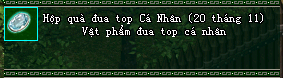 Top 3 : 1 Nhất Kỷ càn khôn 1 Tín vật môn phái 1 Tín vật dương anh ( Chuyển giới ) 200 Lệnh bài boss Trung