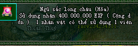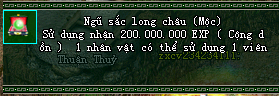 Sử dụng nhận 4.000.000 EXP ( Không cộng dồn ) Sử dụng tối đa x1000 cái Đẳng cấp 60 trở lên có thể sử dụng |