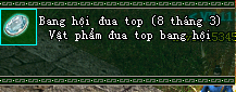 Hoàn thành 40 nhiệm vụ dã tẩu : Nhận 2 Lệnh bài đua top bang hội Boss tiểu hoàng kim : Nhận 10 lệnh bài đua top bang hội Tống kim đạt 5000 điểm tích lũy nhận 2 lệnh bài đua top bang hội Loạn chiến : Nhận 20 lệnh bài đua top bang hội khi hái quả hoàng kim Đua ngựa : Top 1 -> 10 nhận 5 lệnh bài đua top bang hội Long trụ : 15 Lệnh bài đua top bang hội Boss đại hoàng kim : 30 lệnh bài đua top bang hội Vận tiêu bang hội : 30 lệnh bài đua top bang hội Trứng hoàng kim : 10 Lệnh bài đua top bang hội |