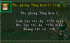 Mảnh ghép trang sức cấp 10 nam và nữ ( Sưu tầm đủ 10 mảnh 1 loại sẽ đổi ngẫu nhiên 1 trang sức cấp 10 nam và nữ ) Hộp quà vũ khí ( Sử dụng nhận 1 vũ khí cấp 10 ngẫu nhiên thuộc tính ) Thiên sơn tuyết liên ( Sử dụng nhận cấp độ 90 , 1 đại thành bí kíp , 1 chiến mã 8 ngẫu nhiên 15 ngày , 500 vạn lượng ) Mảnh trang bị hoàng kim ( Nhu tình - Hiệp cốt - Định quốc ) Mảnh ghép phi phong ( ép phi phong Tống kim cấp 2 ) Trang bị thiên hoàng Hộp quà may mắn Chìa khóa lấp lánh Bí kíp gia truyền ( Chế tạo bí kíp 21 ) Mảnh tranh vân du 1 -> 6 Ngũ sắc long châu ( Kim ) - Sử dụng nhận 100.000.000 EXP tối đa 1 viên / 1 nv Ngũ sắc long châu ( Mộc ) - Sử dụng nhận 200.000.000 EXP tối đa 1 viên / 1 nv Ngũ sắc long châu ( Thủy ) - Sử dụng nhận 300.000.000 EXP tối đa 1 viên / 1 nv Ngũ sắc long châu ( Hỏa ) - Sử dụng nhận 400.000.000 EXP tối đa 1 viên / 1 nv Ngũ sắc long châu ( Thổ ) - Sử dụng nhận 500.000.000 EXP tối đa 1 viên / 1 nv Chiến mã 8x ( ngẫu nhiên ) Phi Phong Tống kim Bạch Chân Đơn ( Sử dụng nhận 50.000.000 EXP 1 nhân vật sử dụng 5 viên ) Huyết Chân đơn ( Sử dụng nhận 100.000.000 EXP 1 nhân vật sử dụng 4 viên ) Huyền Chân đơn ( Sử dụng nhận 150.000.000 EXP 1 nhân vật sử dụng 3 viên ) Kim thạch ( Hoán binh ) Túi bí kíp Cây thông luyện Skill Tiên thảo lộ đặc biệt Thủy tinh ( 3 Loại ) Nến Bát Trân Phúc Nguyệt ( Sử dụng x2 EXP trong vòng 30 phút ) Vật phẩm đua top cá nhân ( Không khóa ) Vật phẩm đua top bang hội ( Không khóa ) Hộp quà trang bị Tinh Hồng bảo thạch Thiết La hán Phúc duyên đại Mảnh Võ Lâm Mật Tịch Mảnh Tẩy tủy Kinh Võ Lâm mật tịch ( 1 quyển ) Tẩy tủy kinh ( 1 quyển ) Bàn nhược tâm kinh Tiên thảo lộ thường Quế hoa tửu Trang bị Kim Phong Thiên sơn bảo lộ Chiến mã 80 Thư Đặc Xá Triều đình Phiếu hoàn thành dã tẩu Tiểu thành bí kíp 9x ( Sử dụng tăng 1 cấp độ skill 9x ) Đại thành Bí Kíp 9x Tín vật môn phái Trường mệnh hoàn lễ bao Gia tốc hoàn lễ bao Đại lực hoàn lễ bao Cao thiểm hoàn lễ bao Phi Tốc hoàn lễ bao Băng Phòng Hoàn Lễ bao Lôi Phòng Hoàn Lễ bao Hỏa Phòng Hoàn Lễ Bao Độc Phòng Hoàn Lễ bao Hành Hiệp kỳ (1) Hành Hiệp kỳ (2) Hành Hiệp kỳ (3) Hành Hiệp kỳ (4) Hành Hiệp kỳ (5)